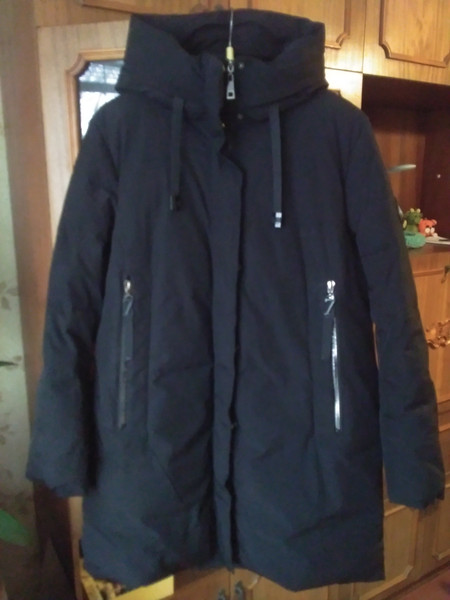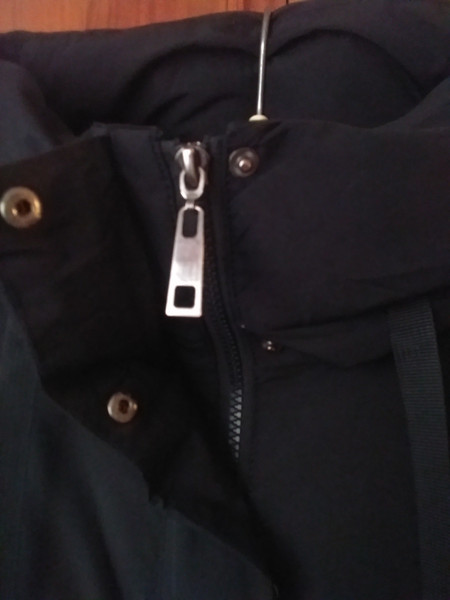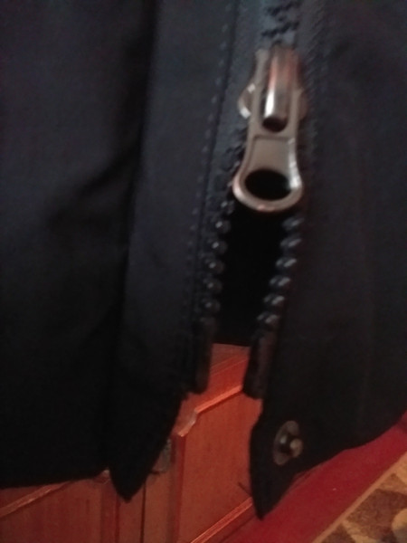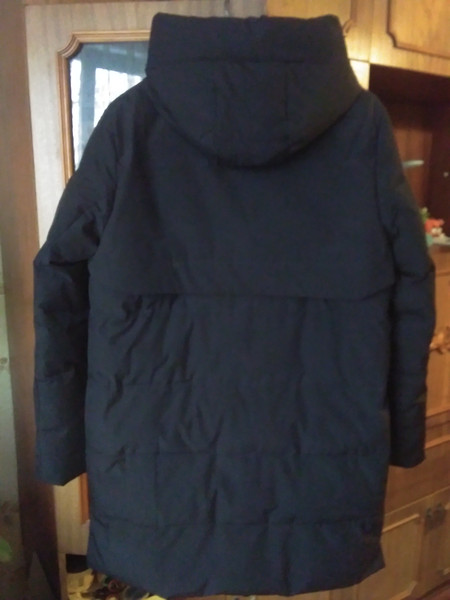 Куртка не нова, має затертості на рукавах, капюшоні, біля карманів. Після прання місцями залишилися розводи від порошку. Також місцями збився наповнювач. Тобто куртка підійде лише для господарських потреб. Наприклад, може хто працює двірником чи на фермі і необхідний верхній одяг якого не шкода якщо зіпсується.
