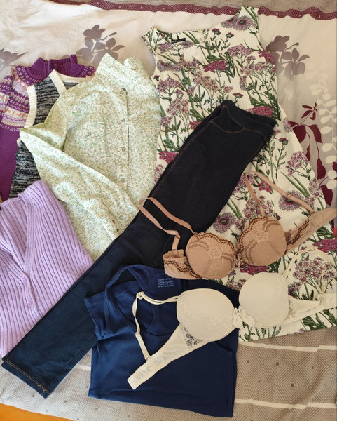 була змога оновити свій гардероб, тому віддам свої гарні, улюблені речі, щоб не лежали і принесли комусь радість. Стан чудовий, все стильне, яскраве, фірмове - до війни була змога купувати дорогі, якісні речі - теплі кофтинки, стильна сорочка на заклепках, жилетки, м'які джинси скіні, майка, сукня квіткова та бюстики чашка А (можу відправити без них). В житті речі виглядають краще, просто немає часу кожну детально фотографувати. Попрошу на пакування30+подарую промо на доставка укрпоштою -50%