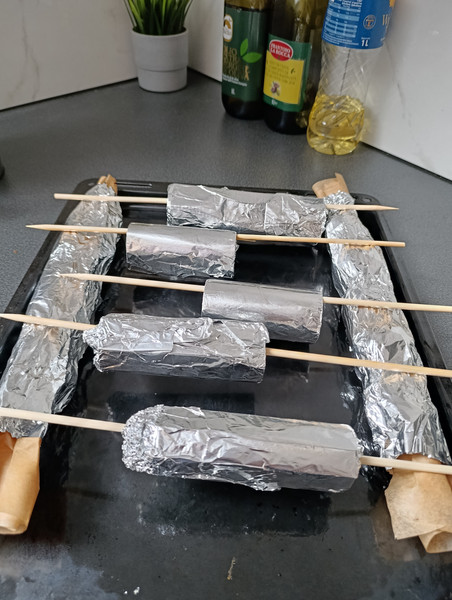 Випікати:В духовці при 180 °C 15–20хв, періодично повертаючи, щоб підрум’янилось рівномірно.