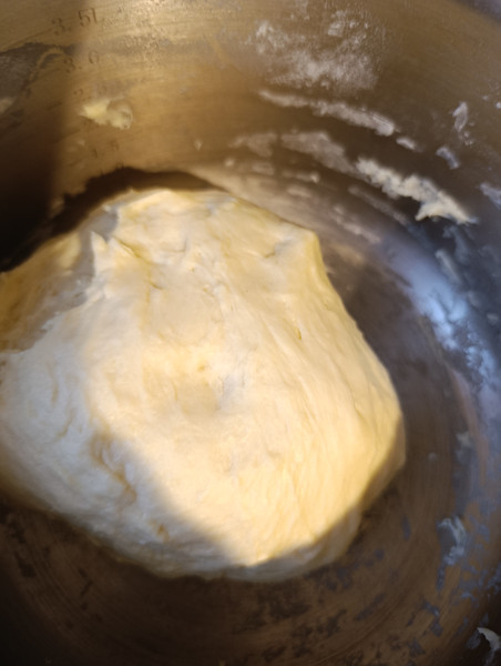 Замісити тісто:Додати яйце, цукор, сіль, масло, поступово всипати борошно.Вимішувати 8–10 хв — тісто має бути м’яким і не липнути .