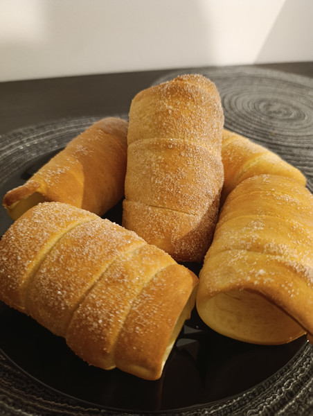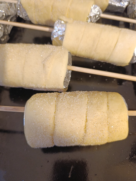 Накрутити на форми смужки тіста, посипати цукром і корицею.