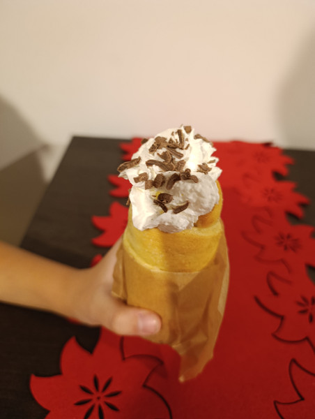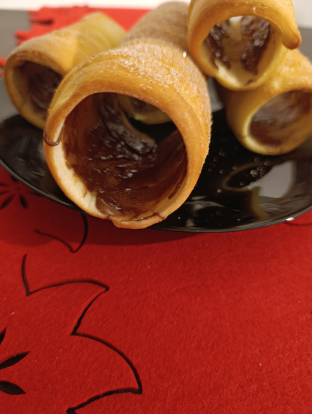 А тепер серединку потрібно змастити щедро нутелою, я змастила шоколадом і не щедро, щоб у моїх дітей не злиплось)))