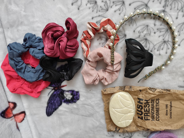 класная чорная крос боди сумка Braska - мягенькая, удобные ручки, много карманов, все молнии исправны и легко работают, из нюансов чуть потёртости возле молнии, не заметны. Много хороших резинок, крепкий кораблик, красивый обруч для волос, вязаный кошелек на молнии, мыло ароматное хендмейд красивое, косметика - румяна, тени, новые карандаши, тушь. Попрошу на упаковку35