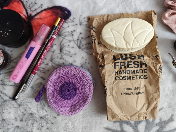 класная чорная крос боди сумка Braska - мягенькая, удобные ручки, много карманов, все молнии исправны и легко работают, из нюансов чуть потёртости возле молнии, не заметны. Много хороших резинок, крепкий кораблик, красивый обруч для волос, вязаный кошелек на молнии, мыло ароматное хендмейд красивое, косметика - румяна, тени, новые карандаши, тушь. Попрошу на упаковку35