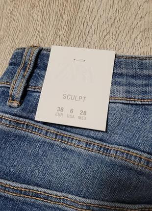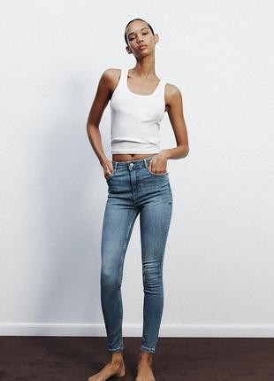 Джинси з надзвичайно еластичної тканини з високою посадкою та п’ятьма кишенями. Застібка спереду на блискавку та металевий ґудзик.38 розмірІдеально сідають по фігурі
