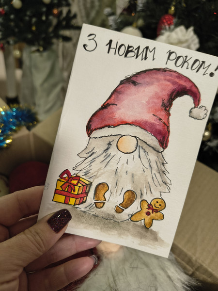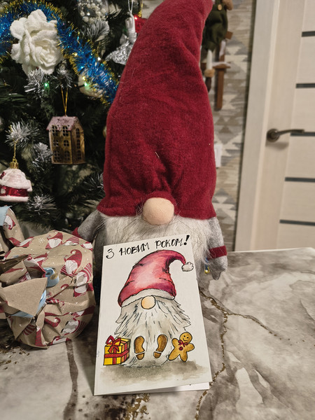 Одразу побачила того, про кого мріяла останнім часом. Навіть не віриться що так буває. Це перший гном в моєму житті) А потім мене просто в саме серце вразила листівка.. вона справжня! Її моя Снігуронька малювала спеціально для мене...