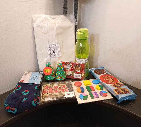 Ваша Снігуронька дуже функціональна, і мені норм. Все врахувала, мамі косметичка, папі носки, старшому бутилку для води, доречі їх багато не буває))), малечі пазлик, дві ялинки однакові вкусняшки, щоб не бились, батькам вкусняшна, і на ялинку прикраси, все враховано, явно бухгалтер дарував))), на пакування не вистачило не сил, не грошей. Глобально, все нове, дотичне до життя, ніхто не обділений. Простий і зрозумілий подарунок.
