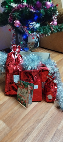 Ось і наша сім'я отримала свій новорічний подарунок! Це вже наша традиція, приймати участь в новорічному обміні подарунками. Отримали таку гарну і яскраву коробочку.