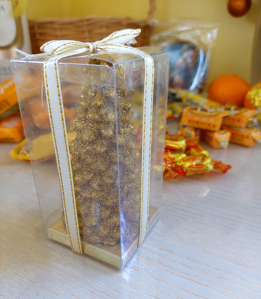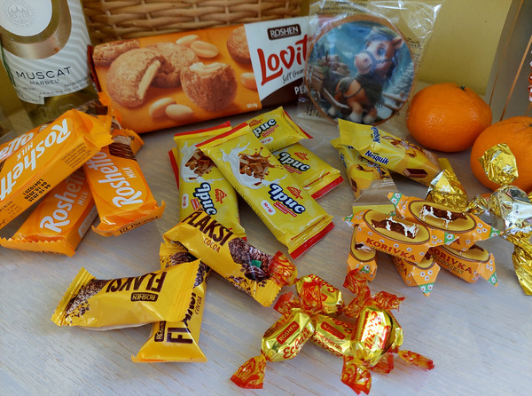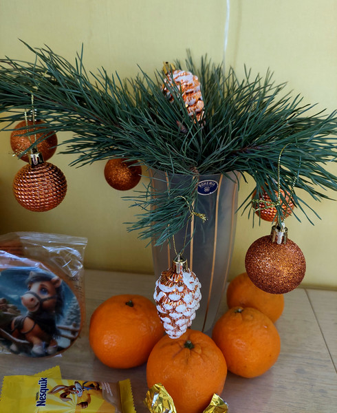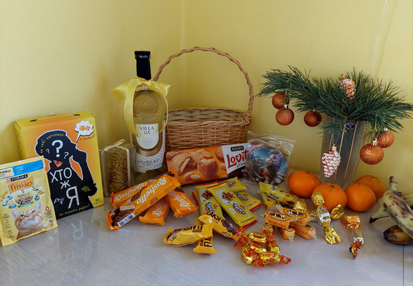 Іринко, дуже дякую Вам за чудовий подарунок! Ви однозначно мали рацію щодо вибору кольору - жовтий мій улюблений! Ялинку ми вже кілька років не ставимо, тож гілочки стали в пригоді - тепер і у нас вдома пахне новорічними святами! Та й усе інше, звісно, буде з'їдено і випито із задоволенням!)