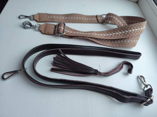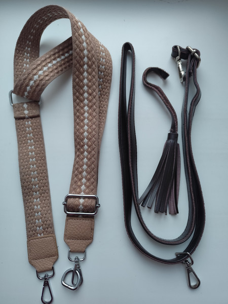 дуже класні ремені до сумок, чудовий стан. На текстильному залишилась компаса до сумки, можна зняти її - дуже міцний ремінь :) коричневий ремінь+декор зі шкіри. Попрошу на пакування25