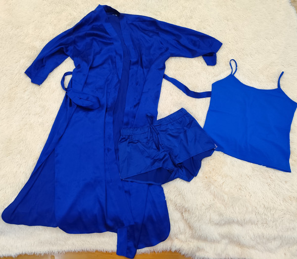 шорти та майка абсолютно нові - купила під халат, в мені подарували комплект, тому так і лежить. Халат хоч і б/в, але вдягала мало, він без нюансів зі зручним поясом.