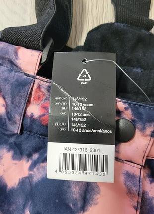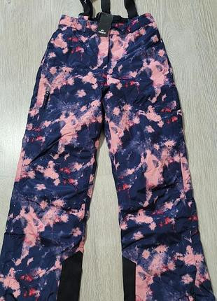 Штани з регульованими та еластичними підтяжкамиЧастково еластичний пояс із застібкою та блискавкоюПідвищений захист нирокЗ боковою кишенею на блискавціЗ практичним захистом від снігу та антиковзаючою гумою на манжетах нігРозмір 10 - 12 р.На зріст 146/152.Носяться супер, не промокають
