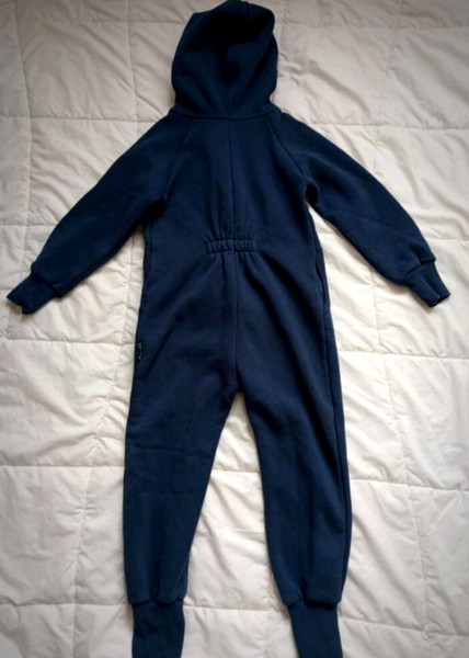 совершенно новый, бренд. unisex толстый, теплый. трикотаж полированный начес толстый. шапка - капюшон - скафандр во вторых размерах и расцветках относили, этот незаметно пролежал. не продувает.начес толстый.Спина, лоб, уши, шея - ЗАКРЫТЫ.Манжеты - руки, ноги тепло.Детям комфортно, родителям спокойно))Для игр на снег, площадки, в лесу - идеальные.