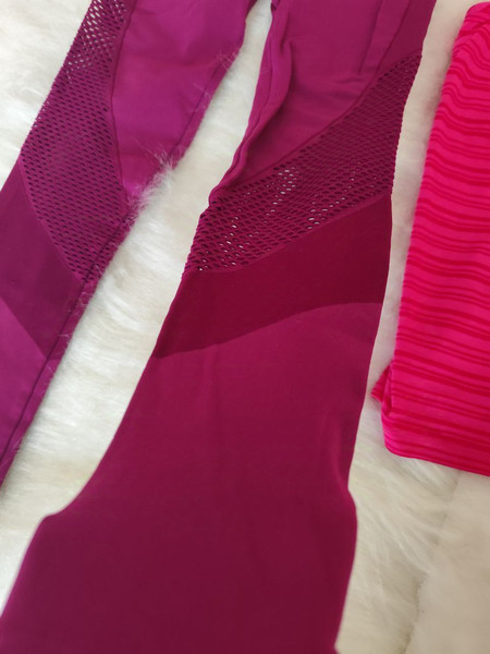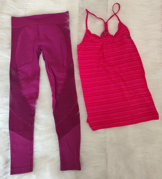 Комплект для спорту: леггінси та топ у рожевому кольорі. Розмір M (38).гарненький, зручний комплект для занять спортом - лосіни з утяжкою та підкреслюючими фігуру елементами, легка, приємна на дотик майка з ущільненням в районі грудей. розмір М, заміри в спокійному стані:довжина 80, крокова 60см (йдуть вище стопи)пояс півобхват 33см, тягнеться до 55смпоб 37, тягнеться до 65сммайка довжина 65см, пог 46см. Попрошу на пакування38