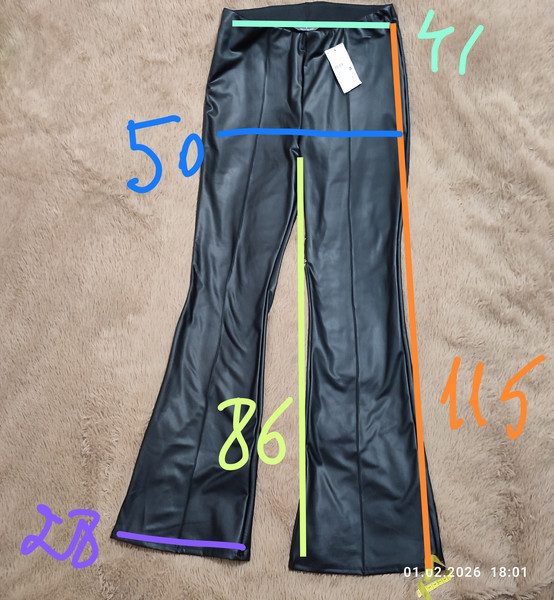 Легінси-кльош з еко шкіри PrimarkЕлегантні легінси з еко шкіри з гладким поясом, центральним швом та розкльошеною штаниноюЗаміри на фото, р.LЕкошкіра легко тягнеться в ширину.